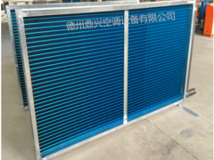 空氣處理機組的空調(diào)表冷器,通過里面流動的空調(diào)冷凍水(冷媒水)把流經(jīng)管外換熱翅片的空氣冷卻,風機將降溫后的冷空氣送到使用場所供冷,冷媒水從表冷器的回水管道將所吸收的熱量帶回制冷機組,放出熱量、降溫后再被送回表冷器吸熱、冷卻流經(jīng)的空氣,不斷循環(huán)。