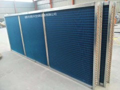 一般將介質為冷凍水的翅片式空氣換熱器稱為9.6米加長表冷器,多用Ф16銅管(孔距38 列距33)。近年來Ф12.7銅管(孔距31.75,列距27.5)表冷器也得到廣泛應用。 9.6米加長表冷器制作采用機械脹管工藝,確保了換熱性能。