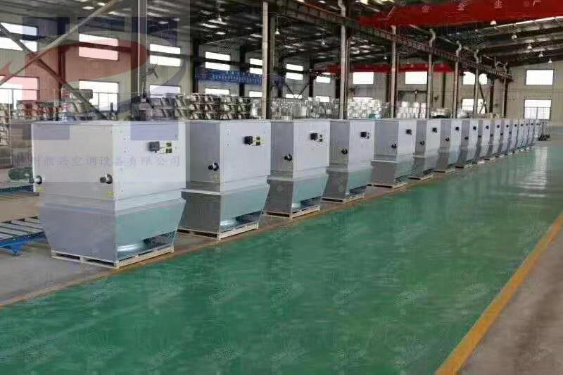 高大空間制熱空調(diào)器安裝在建筑屋頂下方,將空間上方空氣經(jīng)換熱器循環(huán)加熱后通過旋轉(zhuǎn)送風(fēng)裝置送至工作區(qū)域。